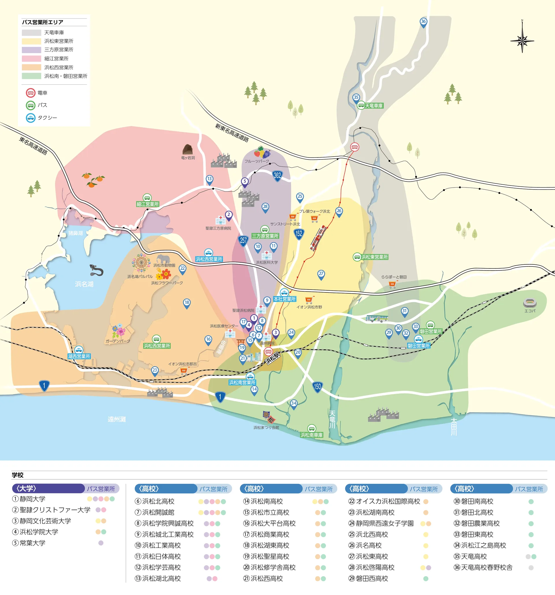 浜松東 | 38 | 6,503 | 笠井、高台、蒲、早出、内野台、小沢渡、上島イオン市野、浜北医大聖隷三方 原、秋葉、鹿島 |