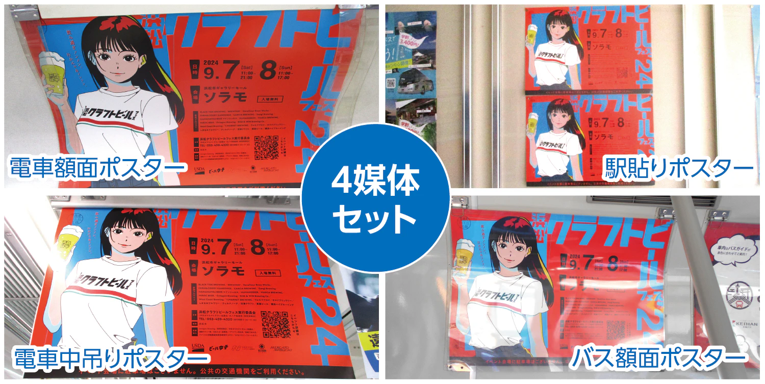 遠鉄電車全車両および全駅構内、さらに遠鉄バスの全車両にB3横サイズのポスターを掲出できるお得なセットです。